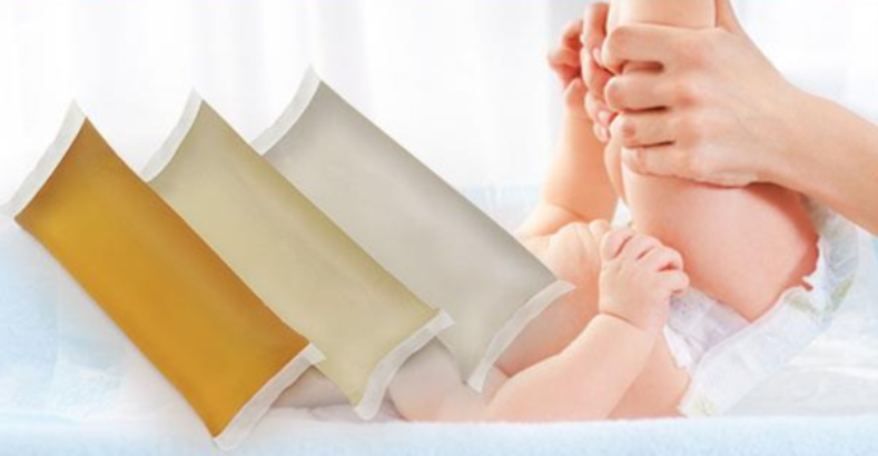 Đặc điểm của hotmelt PSA cho ứng dụng Tã Vệ Sinh là không độc hại, có khả năng thấm ướt tốt lên các bề mặt vải không dệt dùng một lần, độ bám dính và bền bám dính cao.
