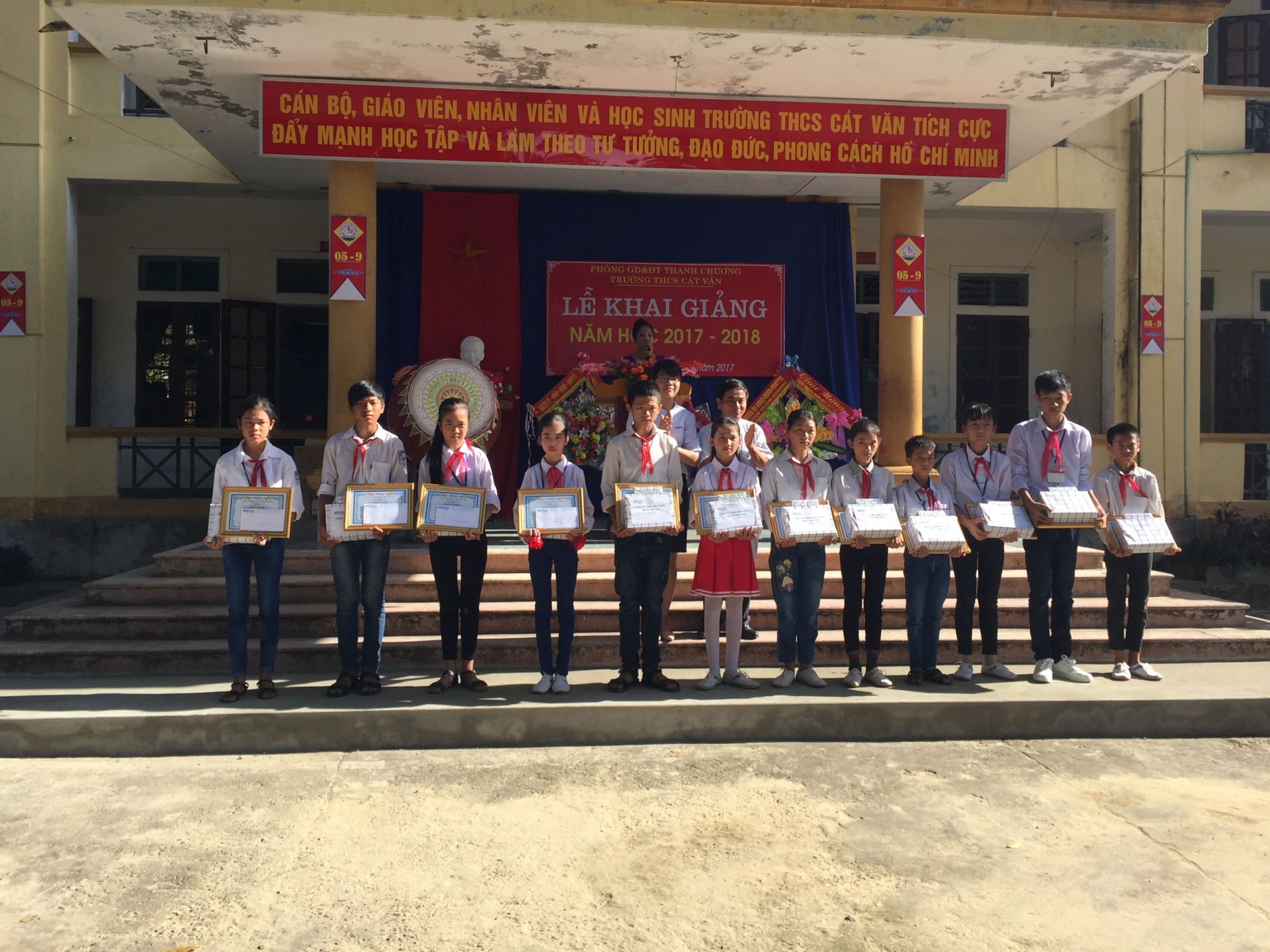 In Cat Van Commune - That was the first time as we met them with 30 scholarship portions including bicycle, pen, notebook with total value of over 27 million Vietnam dongs, they were awarded by Representative of the Company and teachers in the School Managing Board and Thanh Chuong District Youth Union to the pupils. Each gift is handed over, a belief is spread. Their belief can overcome the difficulties in the life to stably go to school, acquire the knowledge. The gift will be on behalf the words to encourage, warn the children studying because there are organizations like us to accompany and create the driving force for them.